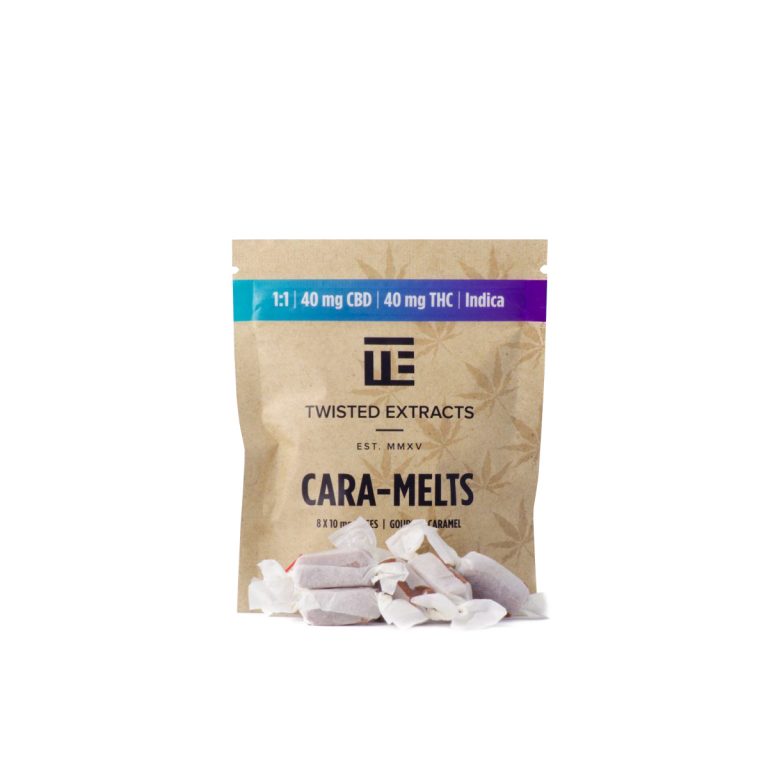+ Free ShippingTwisted Extracts 1:1 Indica Cara-Melts are a refreshing take on everybodies’ favourite classic candy. The only difference between these caramels and your grandma’s are that they’re infused with a strong dose of both CBD and THC.